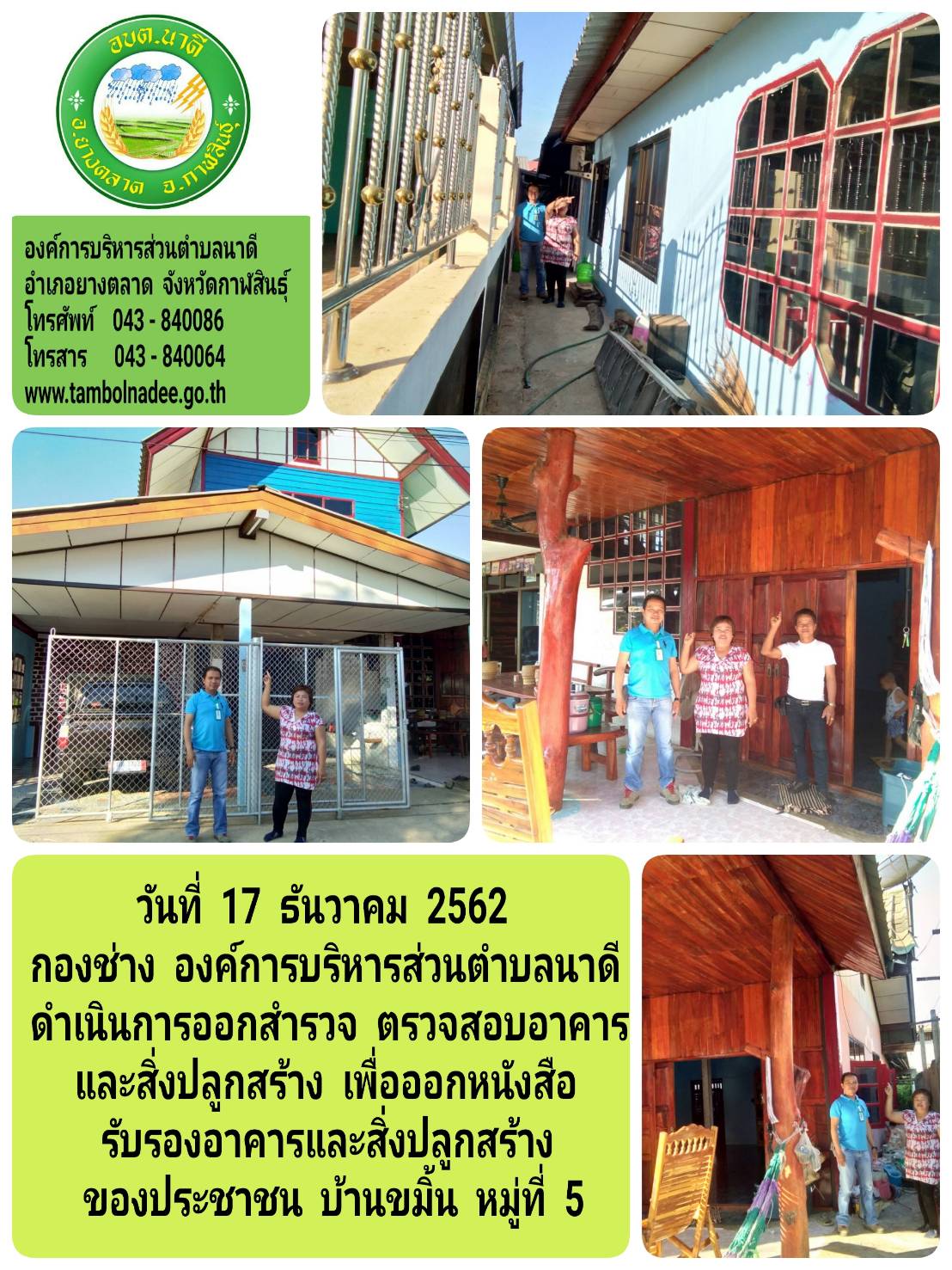 กองช่างอบต.นาดี ดำเนินการออกสำรวจตรวจสอบอาคาร และส...