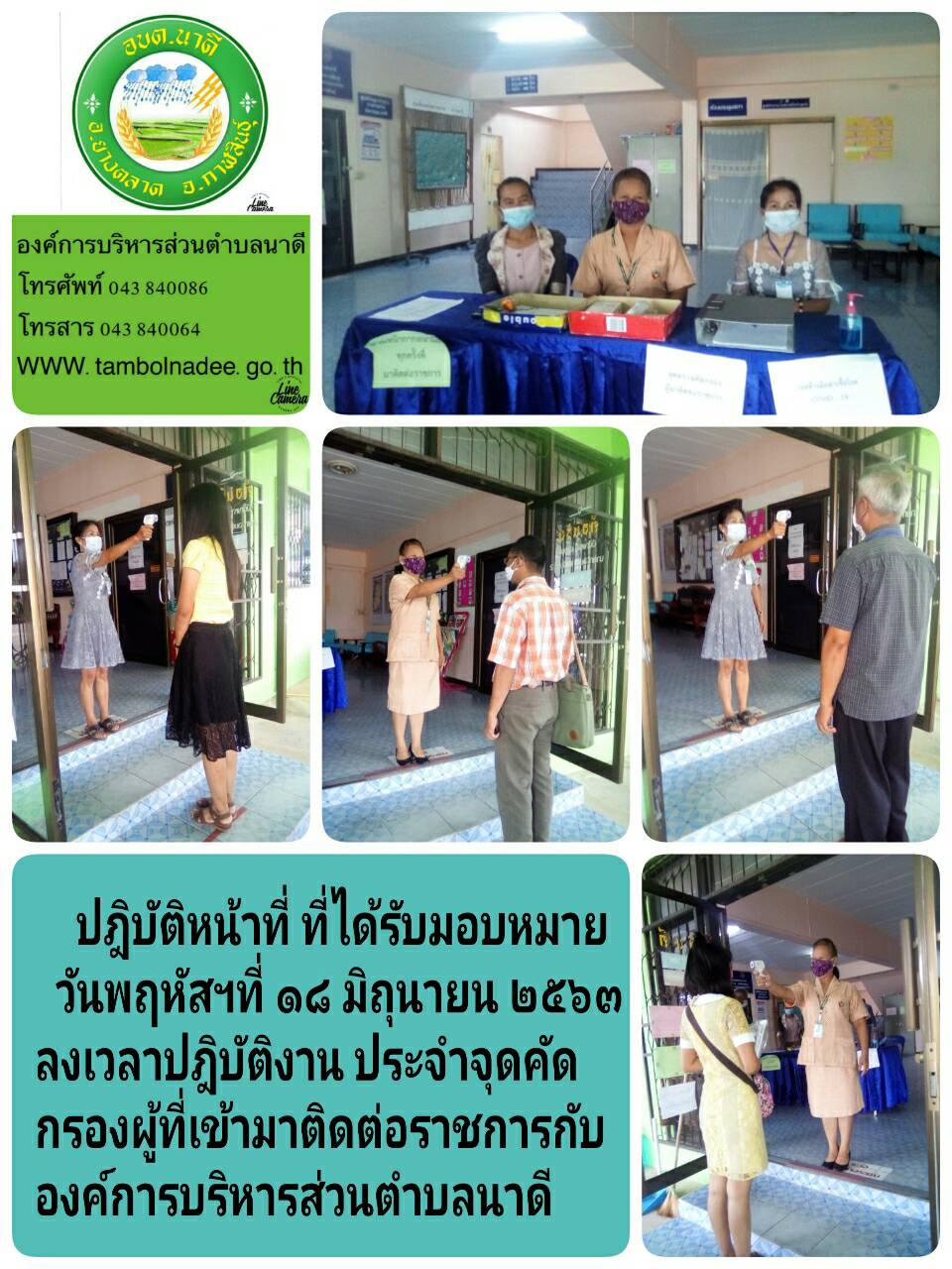 วันที่ 18 มิย. 2563 แจกอาหารกลางวันให้เด็ก ในช่วงสถานการณ์โควิด ทั้ง 4 ศูนย์ และปฏิบัติงานตามที่ได้รับมอบหมายภายใน อบต.นาดี ภายในกองการศึกษาฯและภายในศูนย์