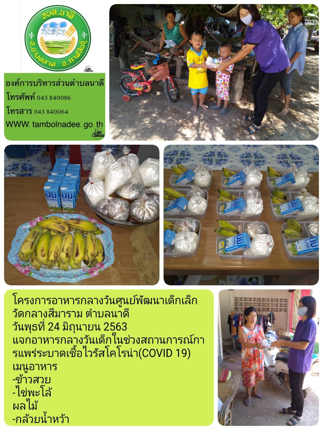 วันที่ 24 มิย. 2563แจกอาหารกลางวันให้เด็ก ในช่วงสถานการณ์โควิด ทั้ง 4 ศูนย์ และปฏิบัติงานตามที่ได้รับมอบหมายภายในศูนย์