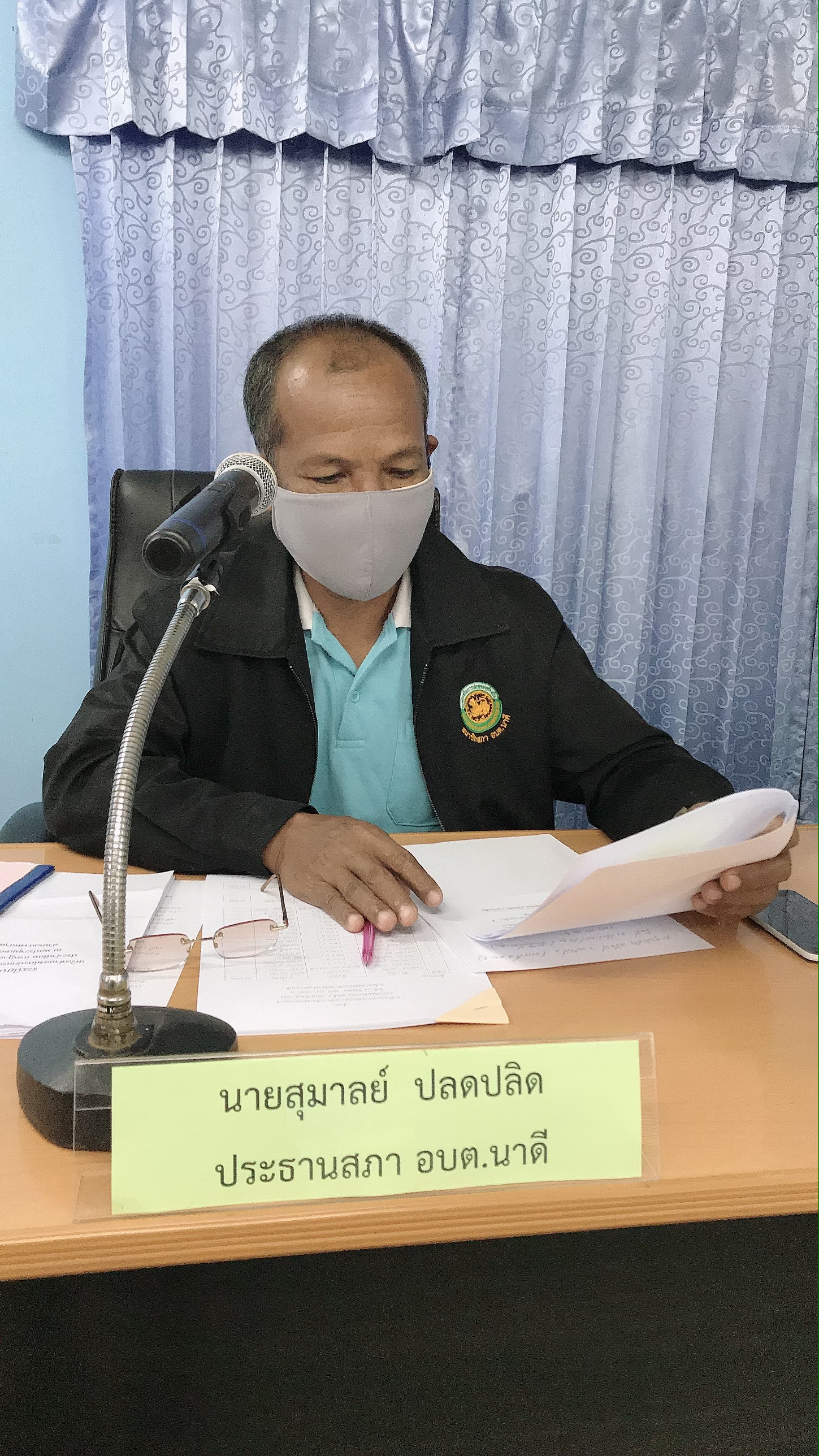 | วันที่ 21 สิงหาคม 2563 เวลา 09.00 น. อบต.นาดี ประชุมสภาองค์การบริหารส่วนตำบลนาดี สมัยสามัญ สมัยที่ 3 ครั้งที่ 2 ประจำปี พ.ศ.2563 เพื่อพิจารณาร่างข้อบัญญัติงบประมาณรายจ่าย ประจำปี งบประมาณ พ. |