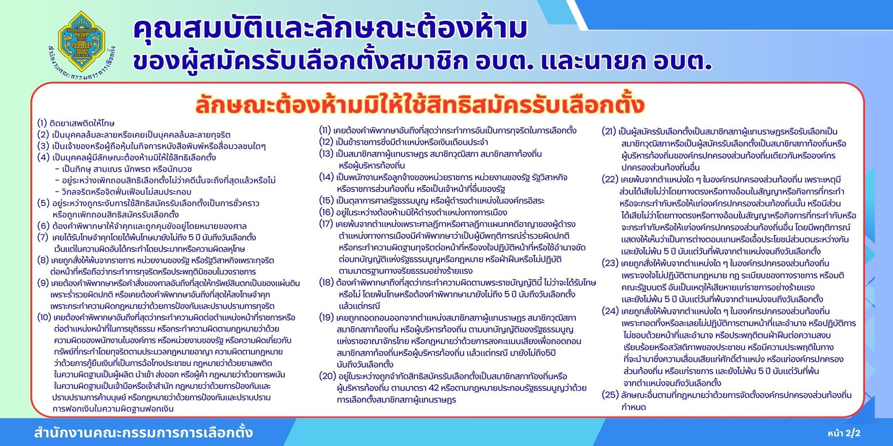 คุณลักษณะต้องห้ามของผู้สมัครรับเลือกตั้งสมาชิก อบต. และนายก อบต.
